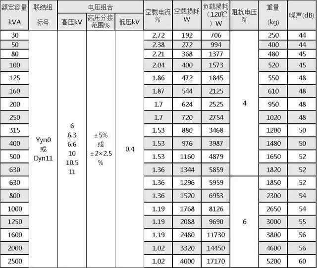 阻抗電壓:標準阻抗電壓見技術參數表