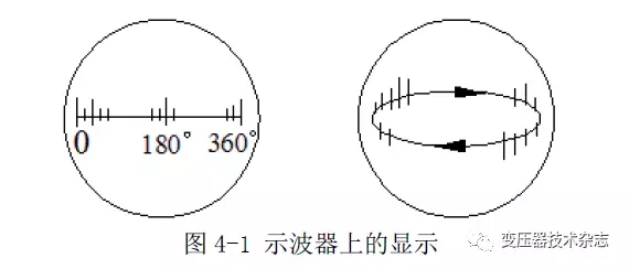 檢測阻抗Zm上的電壓(即檢測信號)是相當小的,必須經過放大才能使儀器上有明顯的指示。經放大器放大后的脈沖信號的峰值可由示波器測量,除此之外,示波器上還可以看出放電發生在工頻的什么相位,測定脈沖波形和放電次數,觀察整個局部放電的特征。以確定放電的大致部位和性質。示波器可用水平掃描和橢圓掃描。水平掃描時全屏偏轉相當于一個周期,并與試驗電壓同步,以確定脈沖的相位。橢圓掃描也是每掃一周相當于試驗電壓一個周期。圖1-為兩種掃描時屏上波形的示意圖。