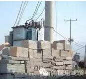 臺墩式是在變壓器桿下面用磚石砌成0.5-1m的四方墩臺,將變壓器放在上面。一般安裝315KVA以上的變壓器。